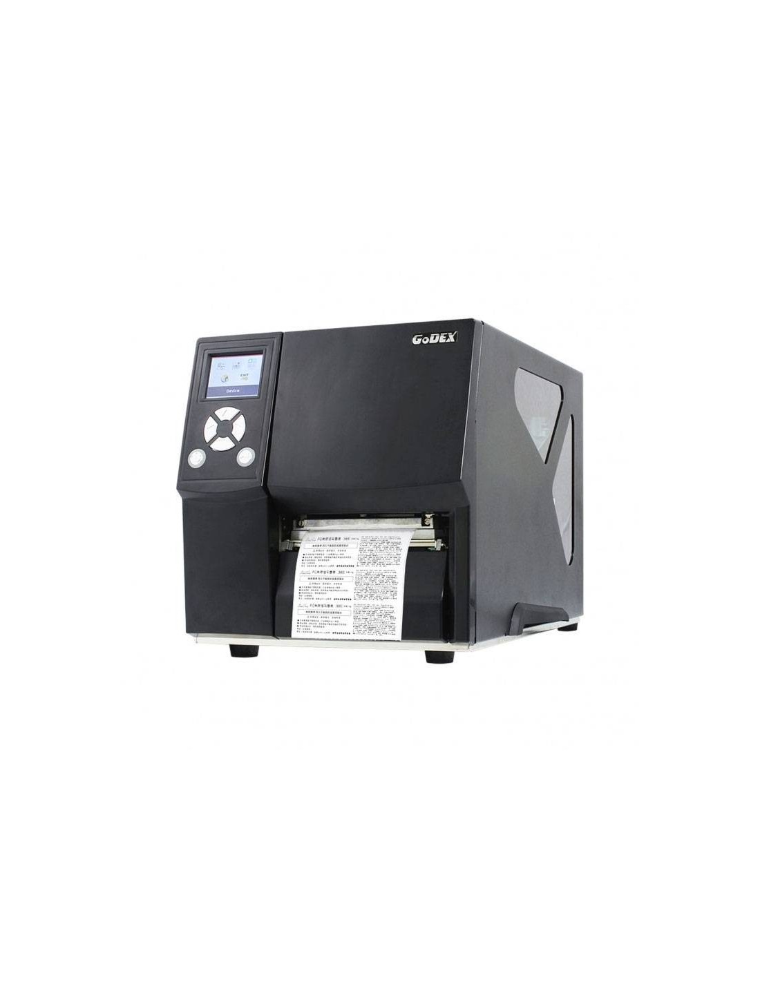 T.T. y TD. 300 ppp. Ancho de impresión 105,7 mm, papel hasta 118mm. Velocidad de 102 mm/seg. Display con pantalla táctil. CPU de 32 bits. Ram 128Mb. Flash 128 MB. Sensor ajustable. Interfaces USB 2.0 (B-Type), puerto serie & paralelo, USB Host, ethernet. Conexión WiFi. Programa GoLabel. Opción de cortador. Emulación: Godex, Zebra y Eltron